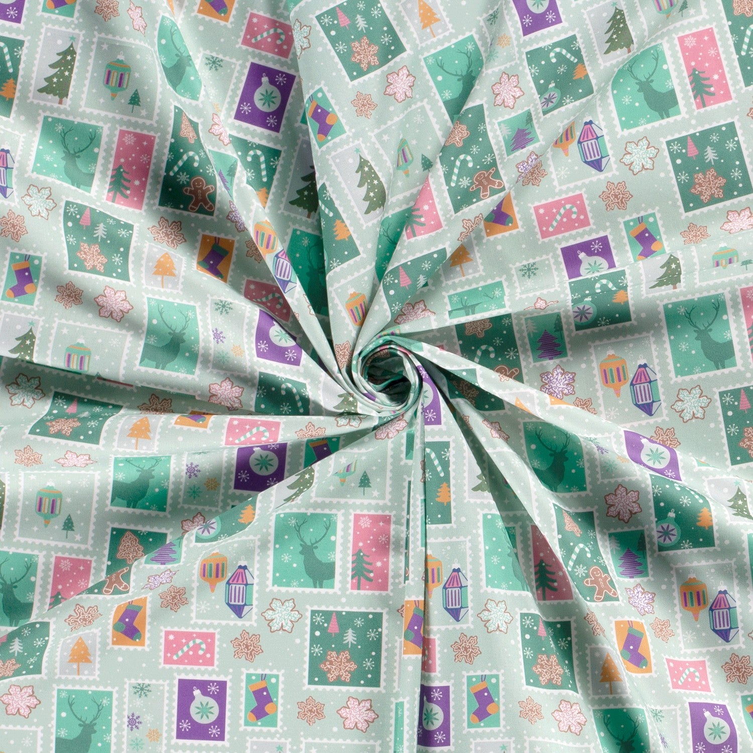 La popeline de coton est un tissu léger, doux et confortable. Il est donc parfait pour confectionner les vêtements et accessoires de bébé (mais aussi des adultes !). Confectionnez des vêtements, couvertures, bavoirs, doudous aux couleurs de Noël ou emballez vos cadeaux avec ce joli tissu.Largeur : 145 cm
